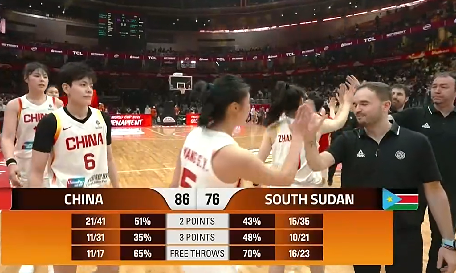 从本场比赛来看,在前面三节比赛打得十分不错,曾一度领先对手达到了19分。然而,到了第四节比赛,中国女篮在进攻端突然中断,变得不会打球了,反观,南苏丹女篮抓住机会,不断缩小两队的分差。不过,好在中国女篮建立的优势大,最终,还是以10分的优势击败了南苏丹女篮。